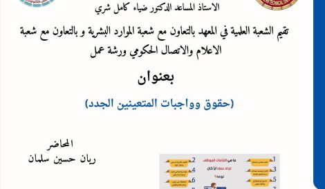 وخلال الحفل، قدّم رئيس الجامعة جملة من التوجيهات والنصائح المهمة لمنتسبي المعهد، تمثلت في تهيئة المناهج والمختبرات والقاعات الدراسية لاستقبال العام الدراسي الجديد، والالتزام بالدوام الرسمي، وتقديم النصح والإرشاد للطلبة، فضلاً عن الالتزام بمواعيد المحاضرات. كما أثنى سيادته على الدور الفاعل للمنتسبتين المتقاعدين وجهودهما المتميزة خلال سنوات خدمتهما في الجامعة والمعهد.