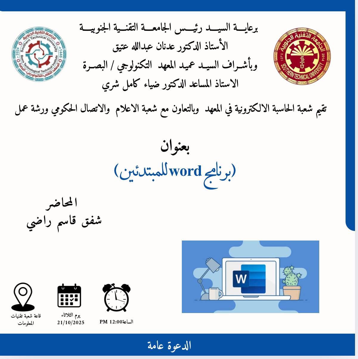على هامش معرض الجامعة لنتاجات الطلبة ، افتتح رئيس الجامعة التقنية الجنوبية الاستاذ الدكتور ربيع هاشم العباسي معرض النتاجات العلمية والبحوث العلمية الخاص بنتاجات طلبة اقسام المعهد التقني البصرة وكذلك نتاجات وحدة الحاضنة التكنولوجية ووحدة الارشاد النفسي وتمكين المرأة ، حيث شمل المعرض الذي اقيم على القاعة الرياضية العديد من الاجهزة المختبرية الطبية والهندسية وبراءات الاختراع واطاريح الدكتوراه ورسائل الماجستير والمؤلفات العلمية . استعرض مشرفوا وطلبة البحوث امام السيد رئيس الجامعة كيفية تصنيع الاجهزة والمواد المستخدمة فيها وما الغاية منها وتكلفتها الرخيصة وكيفية عملها والكثير من التفاصيل الخاصة بها . حضر حفل الافتتاح السادة مساعدوا رئيس الجامعة للشؤون العلمية والادارية وعمداء الكلية التقنية الهندسية والادارية ومعهد القرنة بالاضافة الى عميد المعهد التقني البصرة ومعاونوه العلمي والاداري والعديد من القنوات والاذاعات ووسائل الاعلام والمنتسبين والطلبة .