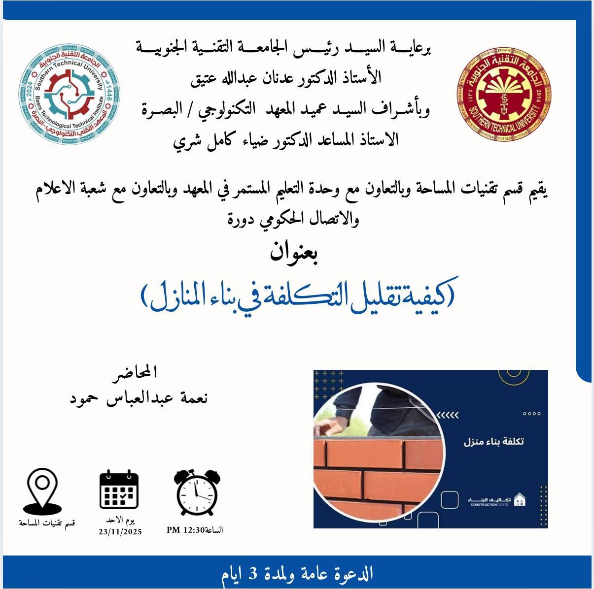 اختيار تدريسي في الجامعة التقنية الجنوبية عضوا في اللجنة التحضيرية للمعرض الدولي السابع لبراءاة الاختراع و الملصقات العلمية المقام في تركيا ..