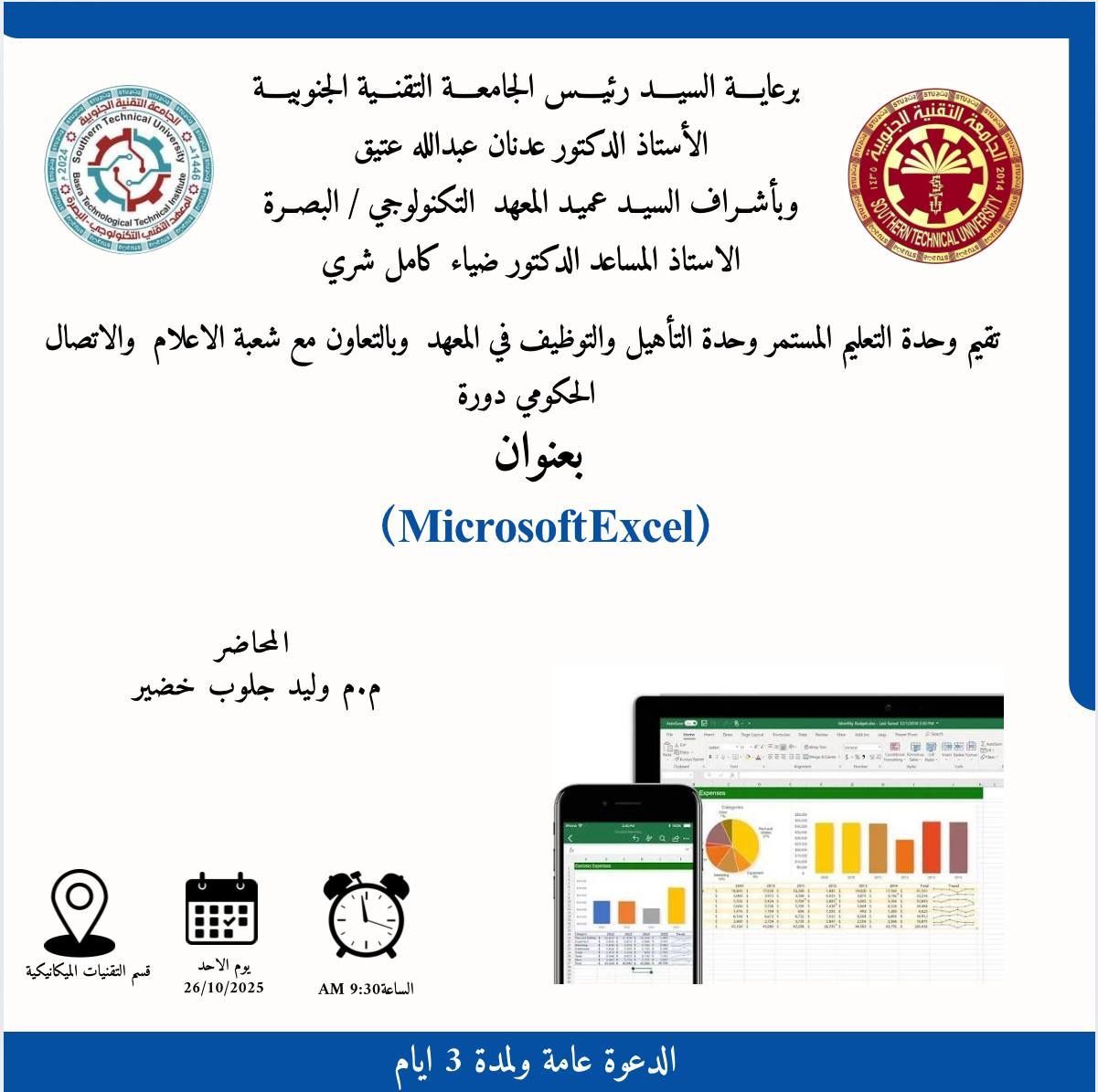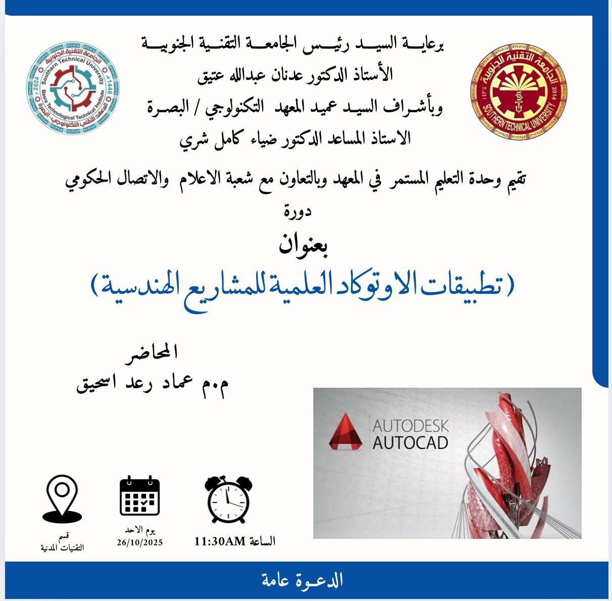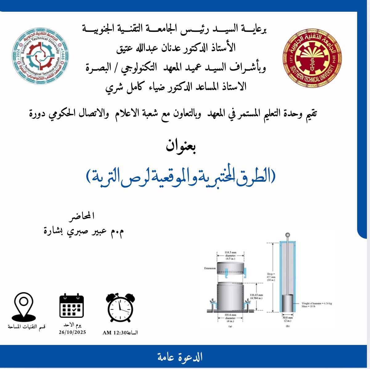 تعلن الجامعة التقنية الجنوبية / المعهد التقني التكنولوجي في البصرة عن إقامة مسابقة ماراثون الجامعة السنوي المخصص لطلاب تشكيلات البصرة حصراً، وذلك يوم الأربعاء المواف2025/10/29 بدلا من يوم الاثنين شروط الاشتراك في المسابقة: ارتداء الزي الرياضي الكامل، على أن يختلف زي كل تشكيل عن الآخر. […]