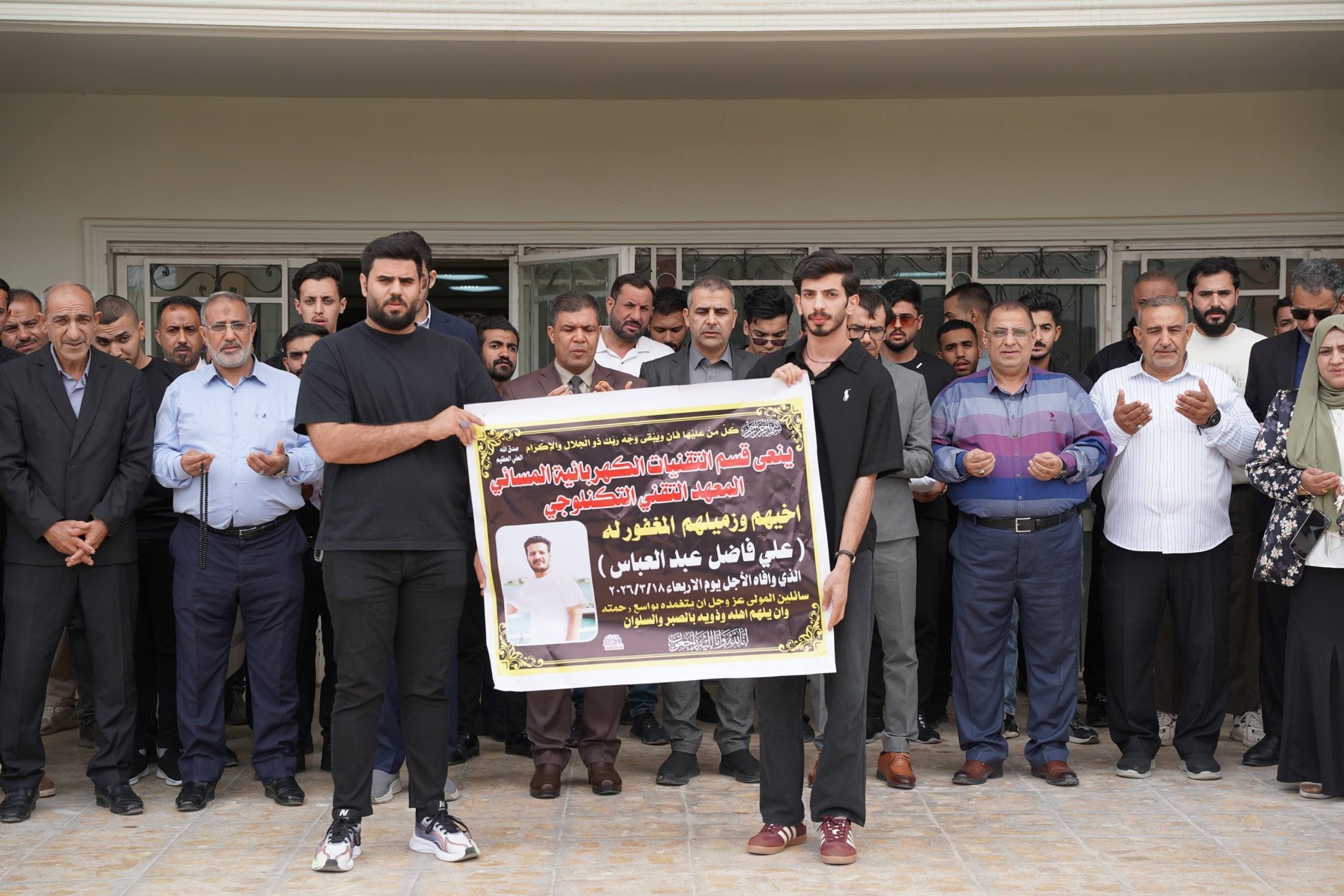 المعهد التقني التكنولوجي في البصرة يقيم وقفة حداد على روح الطالب علي فاضل عبدالعباس في قسم تقنيات الكهرباء.