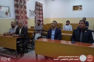 Under the patronage of the Dean of the Basra Technological Technical Institute , Assistant Professor Dr. Diya Kammel Shary, the institute organized a training course titled (Training Course on Workplace Ethics and Professional Conduct).