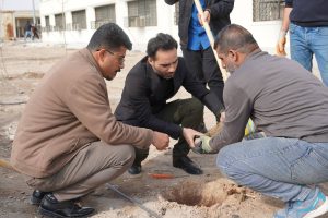 Under the patronage of Assistant Professor Dr. Diyah Kammel Shary, Dean of the Technological Technical Institute in Basra, the Electrical Technologies Department organized a tree-planting campaign at the department’s frontage, with the participation of the Head of the Department, along with a number of staff members and students. The campaign aimed to add an aesthetic touch to the university environment and promote a culture of care for green spaces.