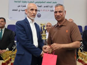 The President of Southern Technical University, Professor Dr. Adnan Abdullah Atiq, honored the Organizing Committee of the Southern Technical University Futsal Championship 2026, which was hosted by the Technological Technical Institute in Basra under the supervision of the University’s Student Activities Department, in the presence of the esteemed deans of the university’s Basra-based colleges.